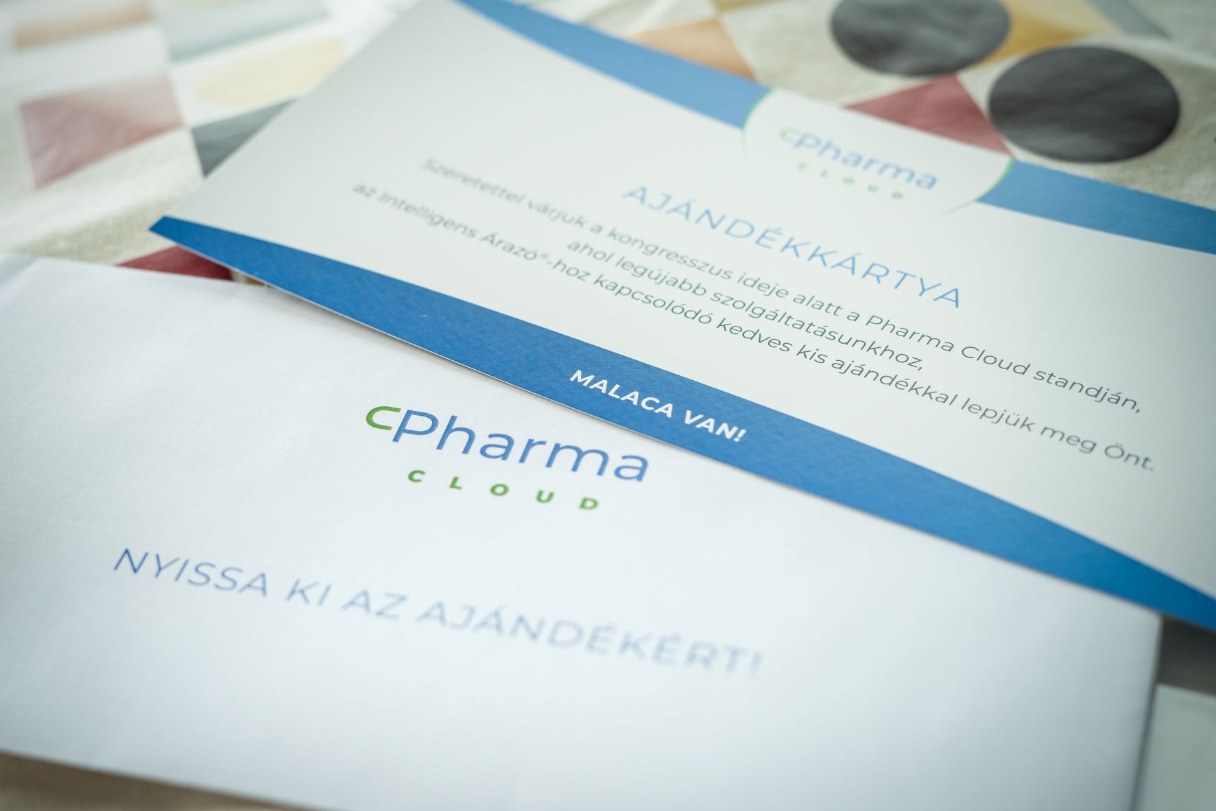 A standon könnyedebb témák és ajándékok is várták az érdeklődőket. Az Adat-totó nevű kvízjátékban megtippelhették a Pharma Cloud egyes szolgáltatási területeihez kapcsolódó számokat, a regisztrációkor kapott borítékok pedig különféle ajándékokat rejtettek. A legnépszerűbb ajándék a tervezett, okos gazdálkodás szimbólumát jelentő malacpersely volt, de a kis ügyességi kockajátékok is kedveltek voltak. A borítékok között a szerencsések nagyobb értékű ajándékokat is találhattak. Azok, akik a helyszínen nem jelentkeztek ajándékaikért, november 30-ig a Pharma Cloud ügyfélszolgálata felé még jelezhetik beváltási szándékukat (ugyfelszolgalat@pharmacloud.hu).