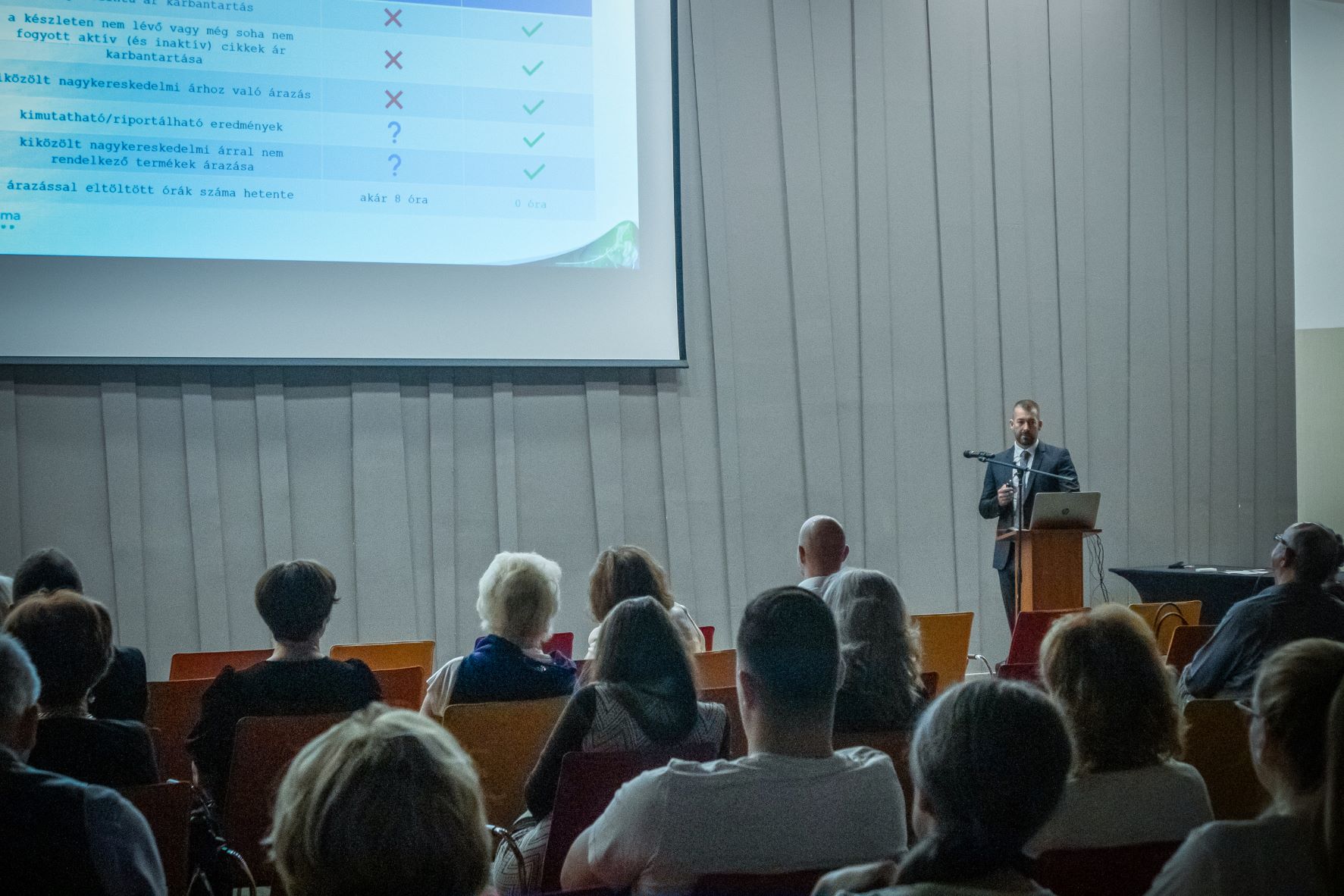 Milyen a tudatos árazás? Hogyan árazzak, hogy ne veszítsem el a vásárlóimat, de a gyógyszertár eredményessége se csökkenjen? Sőt van-e mód, hogy növeljem a patika bevételét? Az én gyógyszertáramban is vannak adatok? Mire tudom használni a szoftverben lévő adatokat? Egyáltalán: mi az, hogy adat, és hol keletkezik? Ezekre a kérdésekre kaphatott választ, aki részt vett az ügyvezető előadásán. Varga Attila prezentációja nagy érdeklődésre tartott számot, ami azt jelzi, hogy a patikák számára az árazás és a nyereségesség kérdése semmiképpen sem másodrendű, különösen a jelen gazdasági környezetben, mely minden gazdálkodó szervezetet érzékennyé tesz.